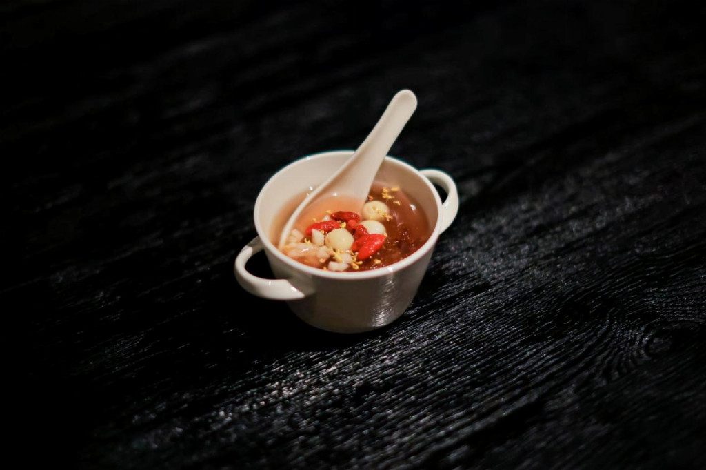 这场晚宴没有争先的时刻。火候、茶汤、甜品和器物彼此让步,谁也不抢谁的风头。温度在其中像看不见的序曲,决定了香气何时靠近,口感何时收紧,结束何时合上。到最后,桌面上只剩几盏茶,一碗空碗里挂着浅浅的桂花印。风从露台边掠过,热与凉在皮肤上相遇,晚宴像被一条细线完整地串起,落进一个稳定的结。